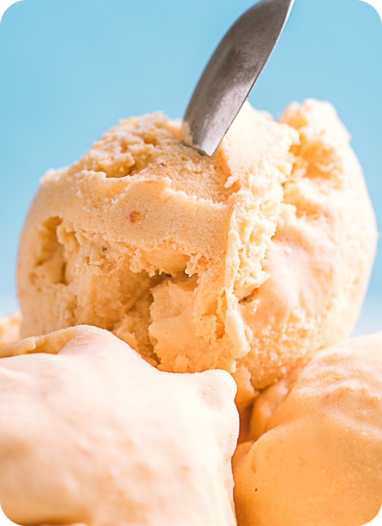 Picar la fruta de tu preferencia en trozos finos o rodajas y meter al congelador por mínimo 1 día; después, vaciar la fruta congelada a una licuadora y agregar un chorrito de leche (entre más fruta agregues, más leche deberás añadir. Pero recuerda que la cantidad de leche debe ser mucho menor que la de la fruta) posteriormente licuar todo muy bien.