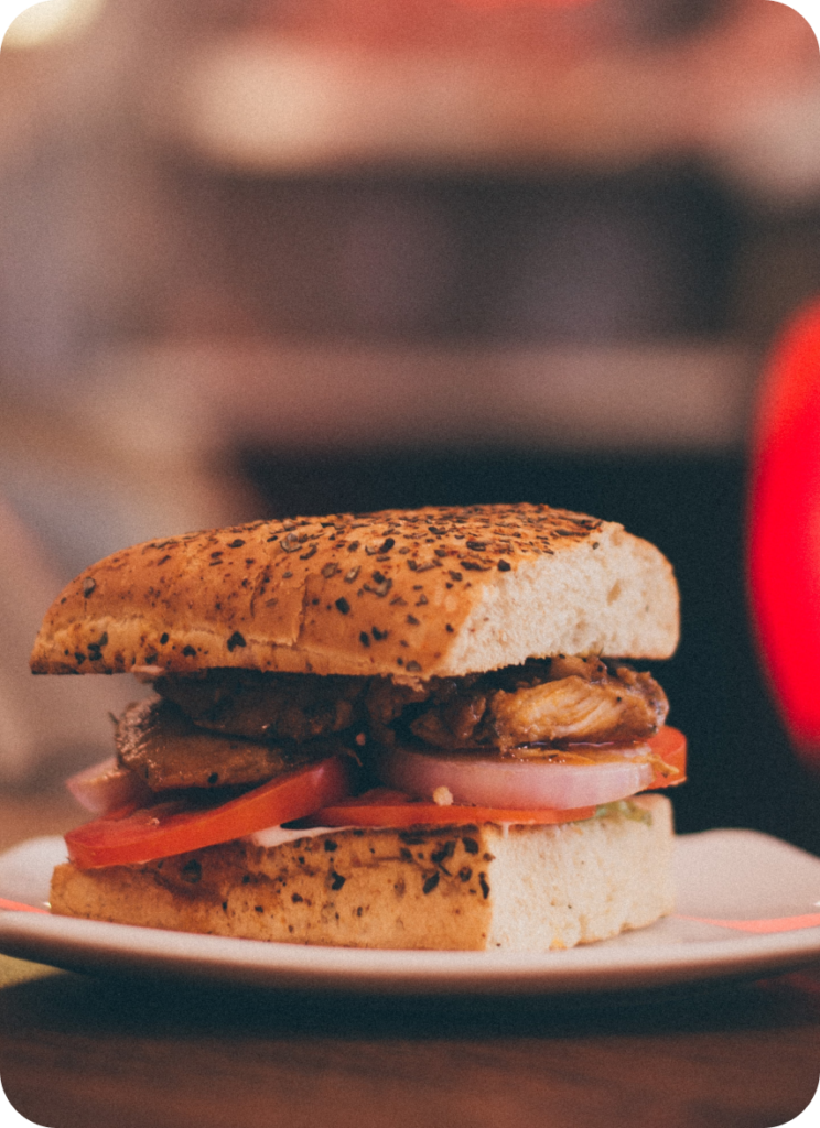 Tomar dos rebanadas de panes, sobre uno de los panes untar queso crema, sobre este, poner dos rebanadas de tomate y cebolla al gusto; adicionar el pollo desmechado. Sobre toda la preparación anterior poner la otra tajada de pan para formar el sandwich.